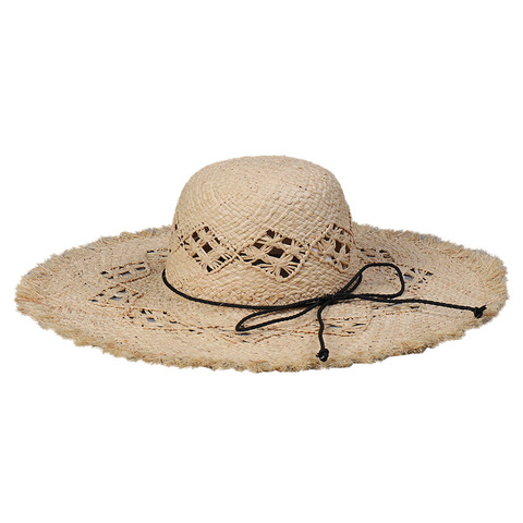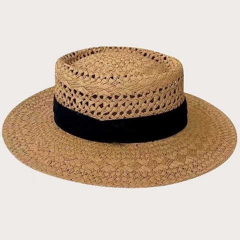หมวกชายทะเลปีกแบนติดริบบิ้นสีดำย้อนยุคหรูหราของผู้หญิงหมวกชายหาดปีกแบนสำหรับการเดินทางกีฬากลางแจ้งทำจากกระดาษทำตามสั่ง