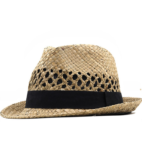 قبعة جاز فيدور من القش للرجال في الصيف مع شبكة مخططة نزهات غير رسمية للسفر ووقت الشاطئ ملحق في الهواء الطلق