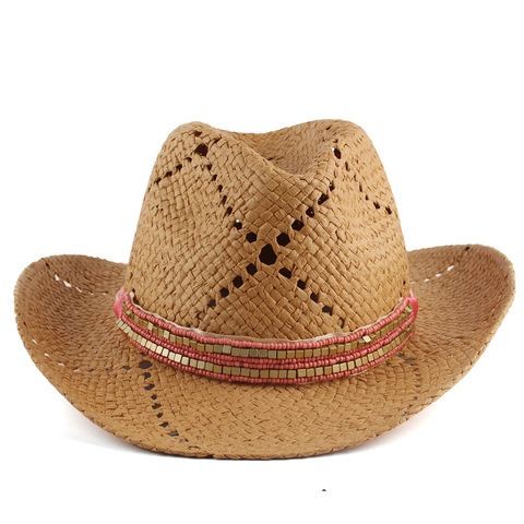 हस्तनिर्मित यूनिसेक्स ग्रीष्मकालीन सूर्य हैट खोखली भूसी सांस लेने योग्य पश्चिमी काउबॉय काउगर्ल शैली सादा आउटडोर यात्रा के लिए