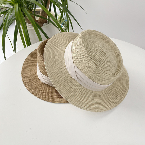 Wholesale Summer Flat Top Sun Hats 100% Wheat Straw for Women Outdoor Fashion Accessory Travel-Suitable Item Trendy Beachwear